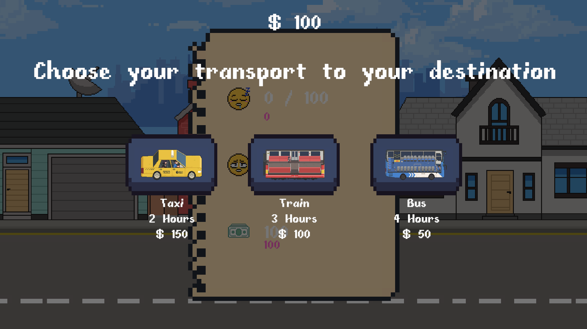 Social Distancing is a game about commuting where trauma turns what should be a normal and mundane activity into chaos. Stay away from people to keep yourself from stressing out and exhausted, and gather enough money to go to therapy before COVID takes you.